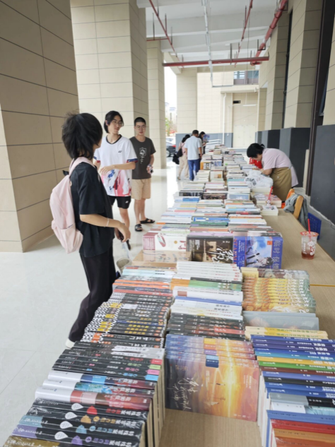 书展陈列了3000余册书籍,种类繁多、内容优质,涵盖人文社科、自然科学、经典名著、人工智能、以及学习方法与生涯规划等多个领域的精选图书,充分满足新生多样化的阅读需求。书展现场热闹非凡,师生、家长被琳琅满目的书籍所吸引,纷纷驻足挑选自己心仪的书籍,眼神中满是对知识的渴望。